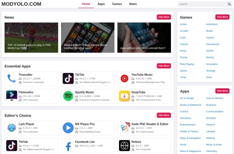 MODYOLO是一个免费安卓破解软件平台,主要提供下载免费的mod apk 游戏和高级应用程序(破解软件),mod apk是什么,简单来说是官方版本的修改版本,以获得一些附加功能,如付费功能、无广告,说人话就是破解软件,网站的应用程序十分丰富,其中还有一个大人游戏标签,网站是英文的,可以使用翻译即可。
